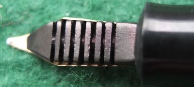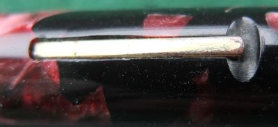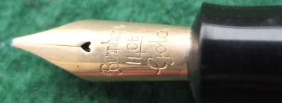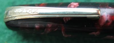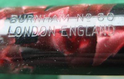 Here is a nice lever-fill Burnham 60 fountain pen in red and black with gold-plated trim. The pen has a medium grade 14ct gold nib; its beautiful to write with and there are no signs of wear on the barrel where the cap posts or where the cap fits and there is no other damage apart from the new barrel end. The plating on the lever, the band, and the clip is good; the imprint is crisp.