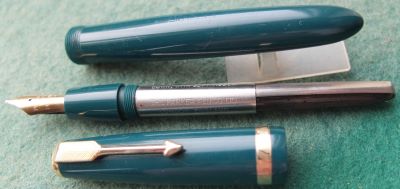 This is a very nice little-used condition Parker Duofold fountain pen in its original box with sleeve; I don't think this pen has ever been used very much and one you will be really thrilled with it. The nib is a medium grade 14ct gold and will write nicely.
