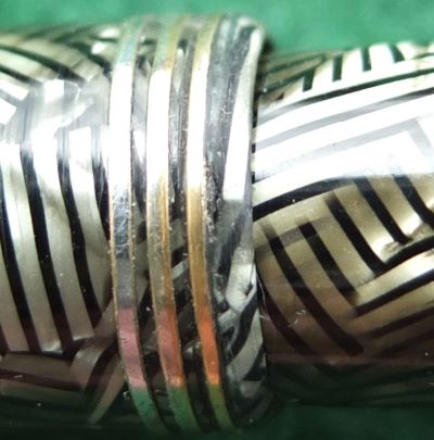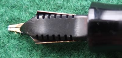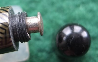 Here is a very nice Canadian Televisor in silver and black from 1935 ish with nickel trim and an unreadable imprint; this pen has been used so has a few small marks consistent with that use but it is not damaged and any new owner, wanting it to use, will be thrilled with it; it has a lovely broad oblique grade 14ct gold Canadian nib and writes nicely; there are slight signs of plating wear on the bands but not on the clip; there are very little signs of wear where the cap fits or where it is posted. Please note this is the larger version.