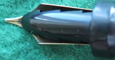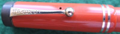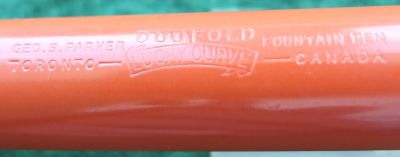 Here is a very nice Duofold Senior Lucky Curve fountain pen in red permanite from 1928 ish with a very crisp imprint; this pen has been used so has a few small marks consistent with that use but it is not damaged and any new owner, wanting it to use, will be thrilled with it; it has a lovely fine grade 14ct gold nib and writes nicely; the pen has obviously been well looked after, albeit used, but there are no signs of plating wear on the bands or the clip; there are very slight signs of wear where the cap fits but not where it is posted. Please note that despite what the picture seems to show there are no cracks or blemishes on the nib.
