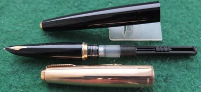 This is a lightly used but good 61 Cartridge or Converter-fill fountain pen with gold-filled cap; this pen is in beautiful condition with no signs of having been used very much; there is a converter fitted. The nib is a medium grade 14ct gold and writes nicely.