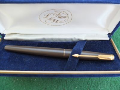 Here we have an inked but unused Parker Falcon fountain pen in lovely condition; the pen has a medium grade nib and is a cartridge or converter filler and has a converter fitted; the pen has not been used so is in such lovely condition; there are no cracks, splits or scratches and the clip is firm. The pen is boxed.