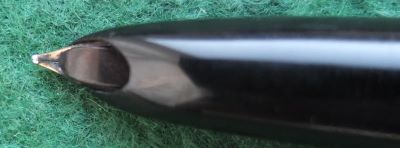 A very nice condition but used 51 vacumatic fountain pen in black with a gold-filled cap; this pen is good and the cap is good too apart from quite a few tiny bruises; the pen does have the most lovely fine grade 14ct gold nib. This pen is a very good daily-use item but is not good enough to add to a collection, in my view.