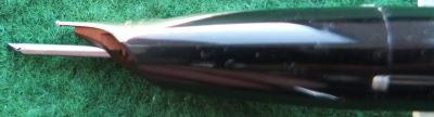 This is another black PFM III pen and pencil set in perfect mechanical and cosmetic condition; it has been used but it is not damaged and the nib shows no sign of wear; the clips are secure. The nib is a lovely medium grade 14k gold and writes nicely. The pencil has spare leads and a new eraser.
