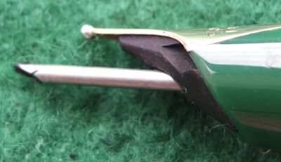 A Sheaffer PFM (PFM meaning Pen for Men) is a little larger than the average pen but still not too large for a ladies hand and I know a few ladies that use one as an everyday pen; it uses the unusual snorkel filling system which is generally found to be quite a talking point; these pens were made in 1959 in five colours viz. black, burgundy, blue, green, and grey and in five models viz. PFM I, PFM II, PFM III, PFM IV, and PFM V; this pen is the green one with the gold electroplated trim.