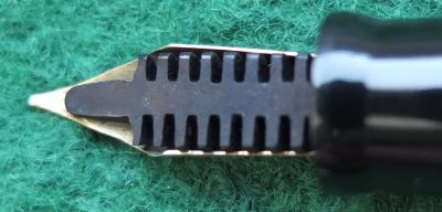 Here is a classy-looking Swallow lever-fill combination in very nice condition, albeit a little darkened through age; the pen has a 14ct gold fine grade No.2 nib and the pencil has leads; the item is in very good condition but there are signs of use in the form of a little wear where the cap fits but not where it has been posted; there are no cracks, splits or serious scratches and only slight signs of plating wear; the nib, by my classification, is a nice writer and is a little flexible; this pen would make a good daily-use pen/pencil or could be added to a collection and not look out of place.