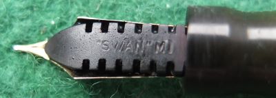 Here is a classy-looking Swan SM10/86 lever-fill in very nice condition, albeit a little worn through use, with a 14ct gold extra-fine grade No.1 nib; the pen is in very good condition but there are signs of use in the form of a little wear where the cap fits and where it has been posted; there are no cracks, splits or serious scratches but there are slight signs of plating wear on the clip; the nib, by my classification, is a nice writer with some flexibility; this pen would make a good daily-use pen or could be added to a collection and not look out of place.