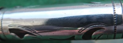 Here is a very nice and quite rare 412VP eye-dropper-fill fountain pen in black with a Sterling Silver filigree overlay; it was made around 1905 and has been used quite carefully; it looks lovely and will perform really well; the pen has a fine grade 14ct gold flexible No.2 nib; it needs to be filled from a bottle using a pipette. The pen is in super condition with no name or initials on the cartouche, and the Sterling Silver clip is secure. These Watermans are difficult to find, especially ones as good as this.