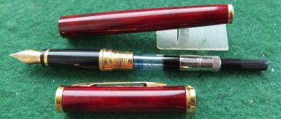 Here is a carefully-used Waterman Preface fountain pen in Thriller Red laque finish with gold-plated trim; it was made around 2000 and has been used but not a lot; it writes nicely; the pen has a medium grade 18ct gold nib and is a cartridge or converter-filler and has a new converter fitted; cartridges and converters are readily available from High Street stationery shops. Please be aware that there is some fine surface scratches visible on inspection.