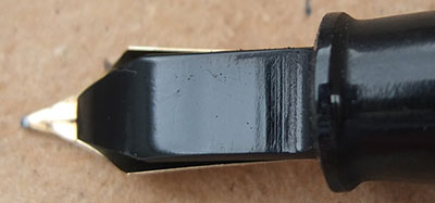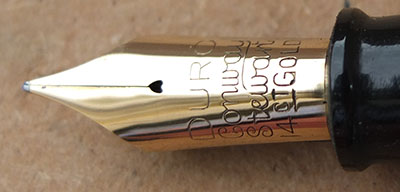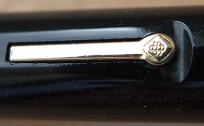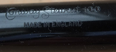 Here is a very nice condition CS100 in black, made around 1950; the pen is a lever-filler and has a medium grade 14ct gold nib and writes nicely with some flexibility; there is a little plating wear on the clip but virtually none on the lever; there are no cracks, chips or deep scratches and the imprint is crisp. A lovely and rare pen and big too.