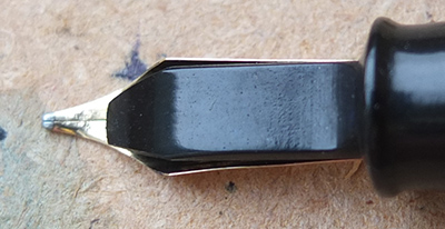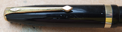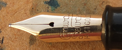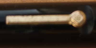 Here is a nice condition CS85L fountain pen in black, made around 1955; the pen is a lever-filler and has a medium grade 14ct gold nib and writes nicely; there is no plating wear on the clip and the band, but there is a little on the lever; there are no cracks, chips or deep scratches and the imprint is readable; this is a nice pen, big too.