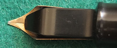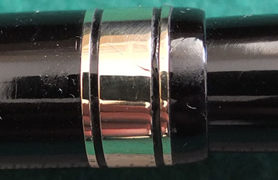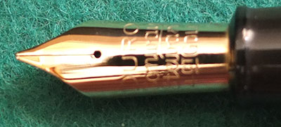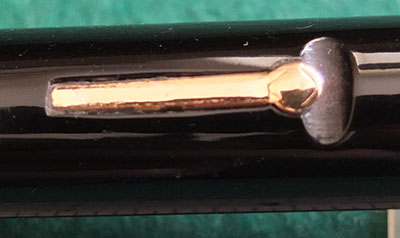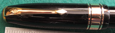 Here is a very nice condition CS100 in black, made around 1950; the pen is a lever-filler and has a good medium grade 14ct gold Duro nib and writes nicely; there is a no plating wear on the bands or the lever but there is just a little on the high points of the clip; there is a small scratch on the wide band and a little pitting on the lever; there are no cracks, chips or deep scratches and the imprint is readable. A lovely pen and big too.
