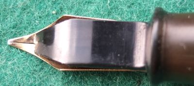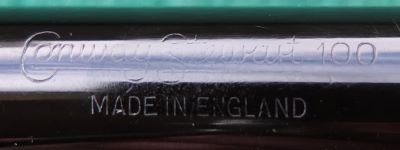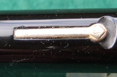 Here is a very nice condition CS100 in black, made around 1950; the pen is a lever-filler and has a good medium grade 14ct gold Duro nib and writes nicely; there is a no plating wear on the bands or the lever but there is just a little on the high points of the clip; there is a mark/scratch on the base of the nib; there are no cracks, chips or deep scratches and the imprint is readable. A lovely pen and big too.