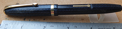 con333: A very nice condition CS27 pen in blue and black marbled finish with gold-plated trim and a medium to broad grade 14ct gold nib £75.00 |