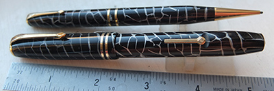 con304: A very nice condition CS15 in green and black marbled with gold-plated trim and a medium grade 14ct gold No.1A nib; this pen is in better-than-normal condition and rare to find in this condition £75.00 SOLD |