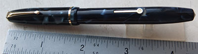 con311: A very nice condition CS479 (I think) fountain pen in blue and black marble with nickel-plated trim and a fine grade 14ct gold nib £55.00 |