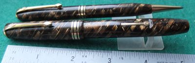 con366: A very nice condition CS58 fountain pen and pencil set in Tigers Eye finish with gold-plated trim; the pen has a medium grade 14ct gold Duro nib; it writes nicely; boxed too £315.00 SOLD |