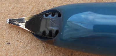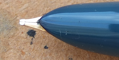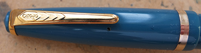 Here we have a nice condition Onoto K4 fountain pen, made around 1955, in blue; the pen is in good condition with a few tiny marks but generally its very good; the pen is a piston-filler and has a broad grade 14ct gold K4 nib which writes nicely.