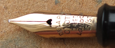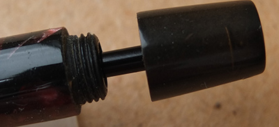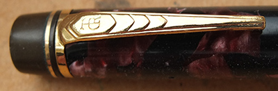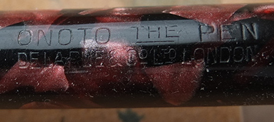 Here we have a nice condition Onoto 6233 fountain pen, made around 1948, with a red and black marbled finish; the pen is in good condition with a few tiny marks but generally its very good; the pen is a piston-filler and has a medium grade 14ct gold single-colour No.3/st nib which writes nicely with a small amount of flexibility.
