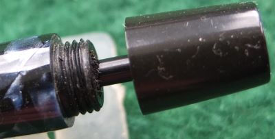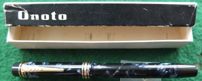 Here we have a nice condition Onoto 6235 fountain pen, made around 1950, with a blue and black marbled finish; the pen is in good condition with a few tiny marks but generally its very good; the pen is a piston-filler and has a medium grade 14ct gold two-colour No.5 nib which writes nicely with a small amount of flexibility. Please note the blind cap is marked 6233 and not 6235; it must have been changed at some point but not in the last 20 years whilst in my posession.