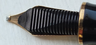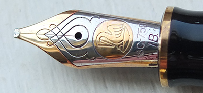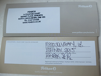 This pen is in lovely condition and has not been used; the nib is a beautiful very broad italic grade 18ct gold and writes nicely; the pen is a piston-filler and needs ink from a bottle; the pen is boxed with its booklet and its beautiful leather pouch.