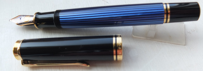 > Pelikan M800 Souveran in Blue and Black with Gold Plated Trim