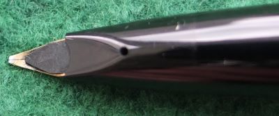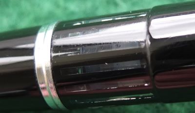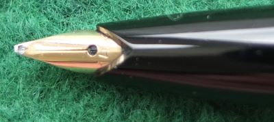 This pen has been used but not a lot; there are few marks and shows little sign of having been used; there are no names or initials on it. This pen is a piston filler and requires ink from a bottle. It writes very nicely.