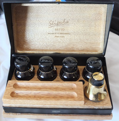 oeu096: Here we have the Stipula Netto De-Luxe pen filling set which ensures your Stipula pen remains in tip-top condition with no dulling of the surfaces; this set is limited to 193 pieces and this is number 105; this is essential for the serious Stipula pen collector. £245.00