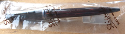 oeu146: A mint unused and unopened Stipula Novecento twist-action ballpoint pen in red and black with 925 silver trim; this pen is still in its original sealed plastic sleeve in its box with outer box. £225.00 |