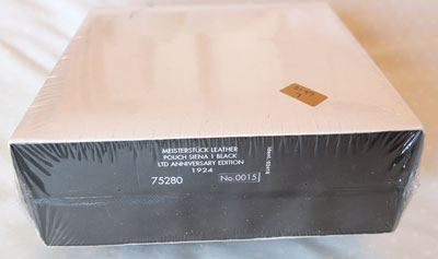 oeu152: UNOPENED A mint unused NOS Mont Blanc Pouch Siena 1 in black leather and in its original box with outer sleeve and unopened cellophane 'skin'; this pouch is one of the 75 Years of Passion and Soul series and limited to 1924 units; I believe the pouch has 'Mont Blanc, 75 Years of Passion and Soul, 0015/1924' impressed on the back; the picture of the pouch is not the one from this box, as its still sealed, but is very similar to the one in this box. £225.00