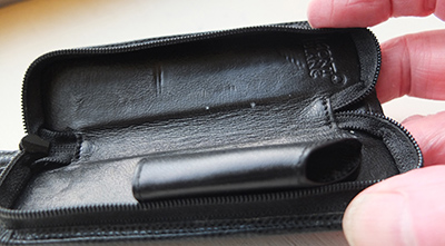 oeu271: A Caran D'Ache leather pen pocket in its original box with a felt protective cover; it has been lightly used but is in lovely condition and holds 3 pens £65.00 |