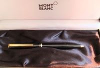 oeu295: A carefully used Mont Blanc ballpoint pen in black with gold-plated trim; this pen has a serial number and comes in its original box; it is in lovely condition with a new refill. £135.00