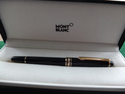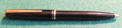 oeu293: A lightly used Mont Blanc Classic fountain pen in black with gold-plated trim; this pen is a cartridge or converter-fill and has a converter fitted; the nib is medium grade 14ct gold and has a little flex; the pen is boxed and I think its probably the original; its all in lovely condition. £95.00 SOLD |