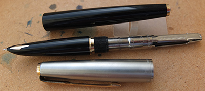 > 61 De-Luxe Fountain Pen in Black with a Brushed Steel Cap