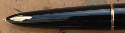 Here we have a very nice Parker 61 De-Luxe fountain pen in black with a brushed steel cap and gold-filled trim; the pen is from the mid 1960s and has been used but still has years of life left in it; there are no marks on the barrel or on the cap; the pen has a medium grade 14ct gold nib; the pen is a cartridge or converter-filler with a converter fitted. This pen writes nicely. It is boxed with its original leaflet.