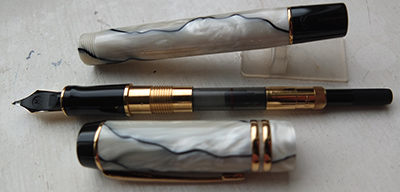 > International Fountain Pen in Black and Pearl Marbled Finish with Gold-Filled Trim