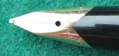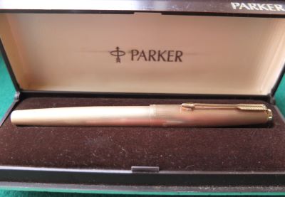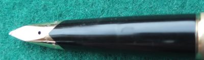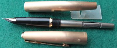 This is a lightly used 65 Cirrus fountain pen with gold-filled trim; it is in lovely condition with one or two tiny marks and boxed too; it doesn't have the usual 'smile' where the end of the clip marks the cap; the nib is a medium grade 14ct gold and writes nicely. The pen is boxed and probably the original.
