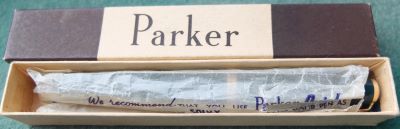 This is a very nice little-used condition Parker Duofold fountain pen in its original box with sleeve; I don't think this pen has ever been used very much and one you will be really thrilled with it. The nib is a medium grade 14ct gold and will write nicely.