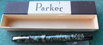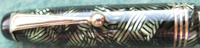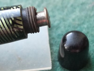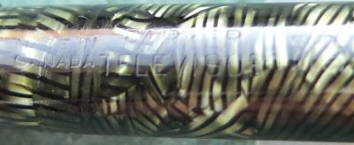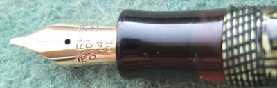 Here is a very nice Canadian Televisor in green and black from 1935 ish with gold trim and a readable imprint; this pen has been used so has a few small marks consistent with that use but it is not damaged and any new owner, wanting it to use, will be thrilled with it; it has a lovely medium grade 14ct gold Newhaven nib and writes nicely; there are slight signs of plating wear on the bands but not on the clip; there are very little signs of wear where the cap fits or where it is posted. Please note this is the smaller version.