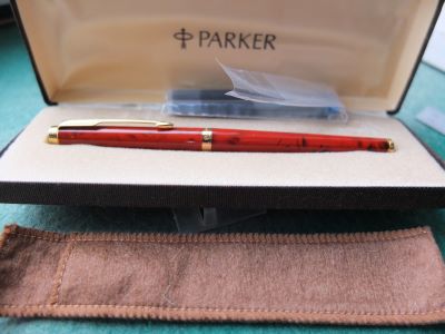 Here we have a mint uninked Parker 180 cartridge or converter-fill fountain pen in red quartz finish with gold-filled trim; the pen has an extra-fine/medium grade nib; the pen has NOT been used and so is in lovely condition as there are no cracks, splits or serious scratches and the clip is firm; the pen is boxed and it is the original.