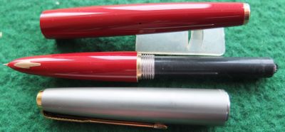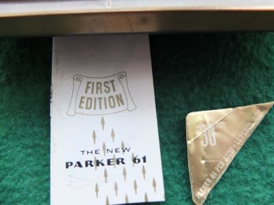 This is a mint unused uninked 61 fountain pen and liquid lead pencil set in rouge red with lustaloy caps and gold-filled clips; both items are in beautiful condition with the pen and pencil having never been used; the nib in the fountain pen is an extra-fine grade 14ct gold and will write nicely; the LL pencil has run out of ink and replacements are not available. The pen set is in its original box with the original leaflet which states that this is a First Edition set. This set should not be used but added to a smart collection. The original price for this set was $30.00, $22.50 for the pen and $7.50 for the pencil as shown on the corner label.