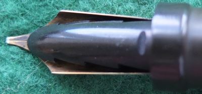 Here is a very nice Duofold Senior Lucky Curve fountain pen in red permanite from 1926 ish with a very crisp imprint; this pen has been used so has a few small marks consistent with that use but it is not damaged and any new owner, wanting it to use, will be thrilled with it; it has a lovely medium grade 14ct gold nib and writes nicely; the pen has obviously been well looked after, albeit used, but there are no signs of plating wear on the band or the clip; there are very slight signs of wear where the cap fits but not where it is posted.
