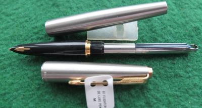 This is a mint 61 Flighter fountain pen, pencil and ballpen set with gold-filled trim; all three items are in beautiful condition with no signs that any one of them having being used; the nib in the fountain pen is a medium grade 14ct gold and will write nicely; the pencil has spare leads and the original eraser. The pen set is in its original box with the original factory labels still attached to the fountain pen and the ballpen.