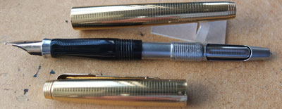 Here we have a lightly-used Parker 75 Cisele fountain pen in 14ct gold-filled finish; the pen has a medium grade 14ct gold nib and uses cartridges or a converter and there is a converter fitted; the pen has not been used much thus is in such lovely condition; this pen will give good service to its new owner.