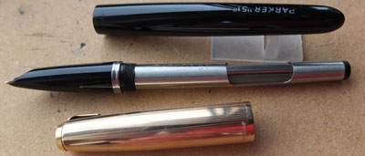 Here we have a truly mint condition Parker 51 aerometric (squeezy-fill) fountain pen in black with a gold-filled cap; the pen has a medium grade 14ct gold nib; the pen has not been inked nor used and it is in such lovely condition with the original factory chalk marks and a clear see-through ink sac; there are no cracks, splits or scratches and the clip is firm. The pen is boxed and is probably the original.