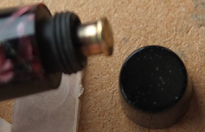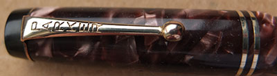 Here is a very nice English Victory in red and black marbled finish from 1945 ish with a readable imprint; this pen has been used so has a few small marks consistent with that use but it is not damaged and any new owner, wanting it to use, will be thrilled with it; it has a lovely medium grade 14ct gold nib and writes nicely; there are signs of plating wear on the ball of the clip but none on the bands; there are slight signs of wear where the cap fits and where it is posted.