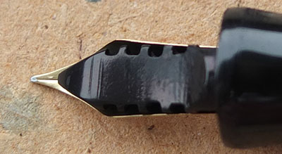Here is a very nice Lady Duofold in jade green permanite from 1929 ish with a very readable imprint; this pen has been used so has a few small marks consistent with that use but it is not damaged and any new owner, wanting it to use, will be thrilled with it; it has a lovely broad grade nib and writes nicely; the pen has no signs of plating wear; there are slight signs of wear where the cap fits but not where it has been posted.