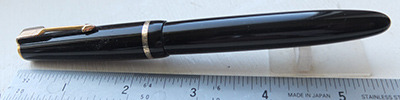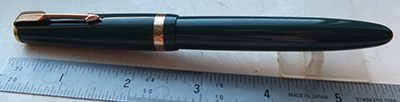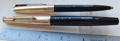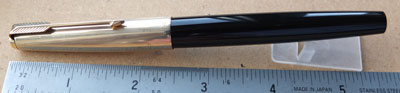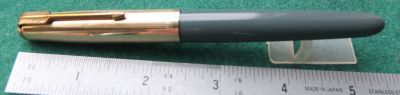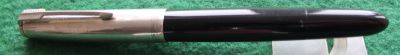 par427: A very nice 51 Mk2 fountain pen in black with a gold-filled cap; the pen is an aerometric(squeezy)-filler and has a fine grade 14ct gold nib and writes nicely £75.00 SOLD |