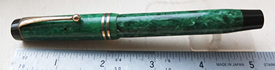 par1318: A very nice condition Major-size vacumatic fountain pen in emerald green pearl from 1941 with a very nice single-colour medium grade 14ct gold nib. Canadian made. £105.00 SOLD |