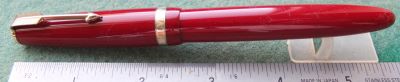 par897: An English Parker Victory in red and black marbled finish from 1945 or thereabouts in good mechanical condition with a nice medium grade 14ct gold nib and two cap bands £125.00 |